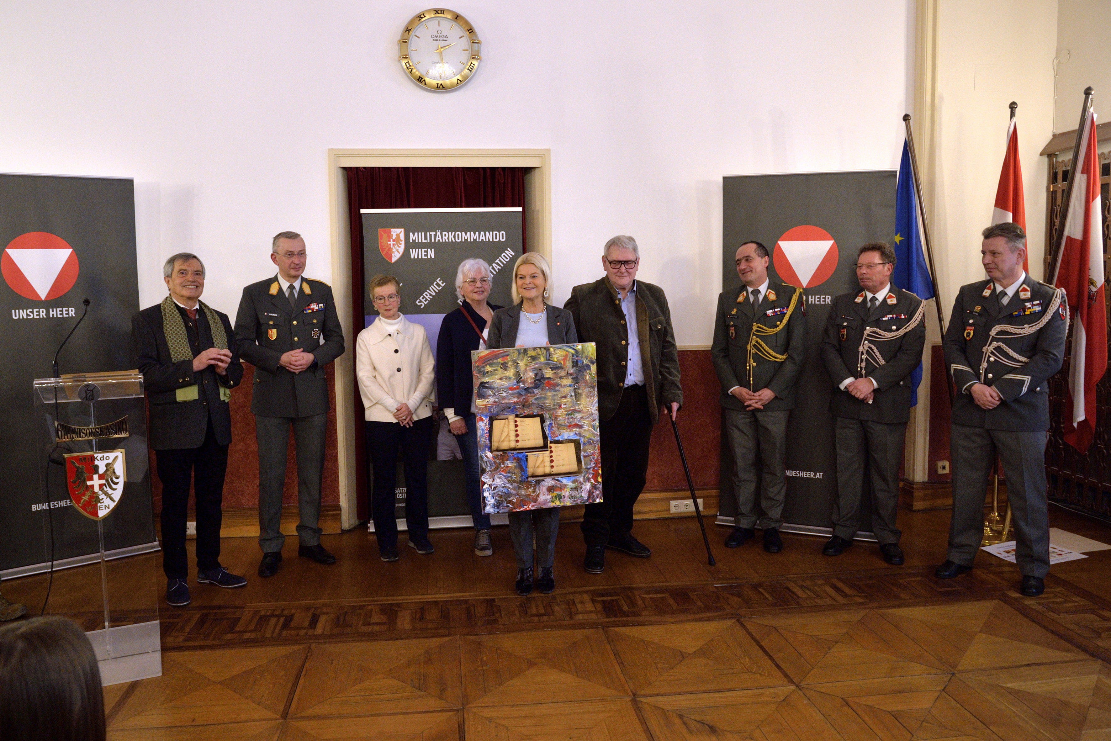 Für ihre über viele Jahre hinweg anhaltende tatkräftige Unterstützung wurde im Zuge der Veranstaltung ebenfalls ein Gemälde mit dem Motto „70 Jahre Staatsvertrag“, gestaltet durch die Teilnehmerinnen und Teilnehmer der Aktion, an Verteidigungsministerin Tanner überreicht.