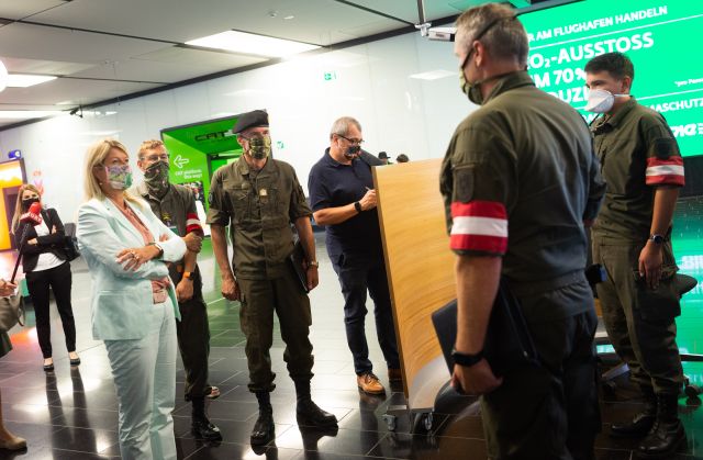 Fotostrecke: Klaudia Tanner besucht Soldaten am Flughafen Wien [5/10]