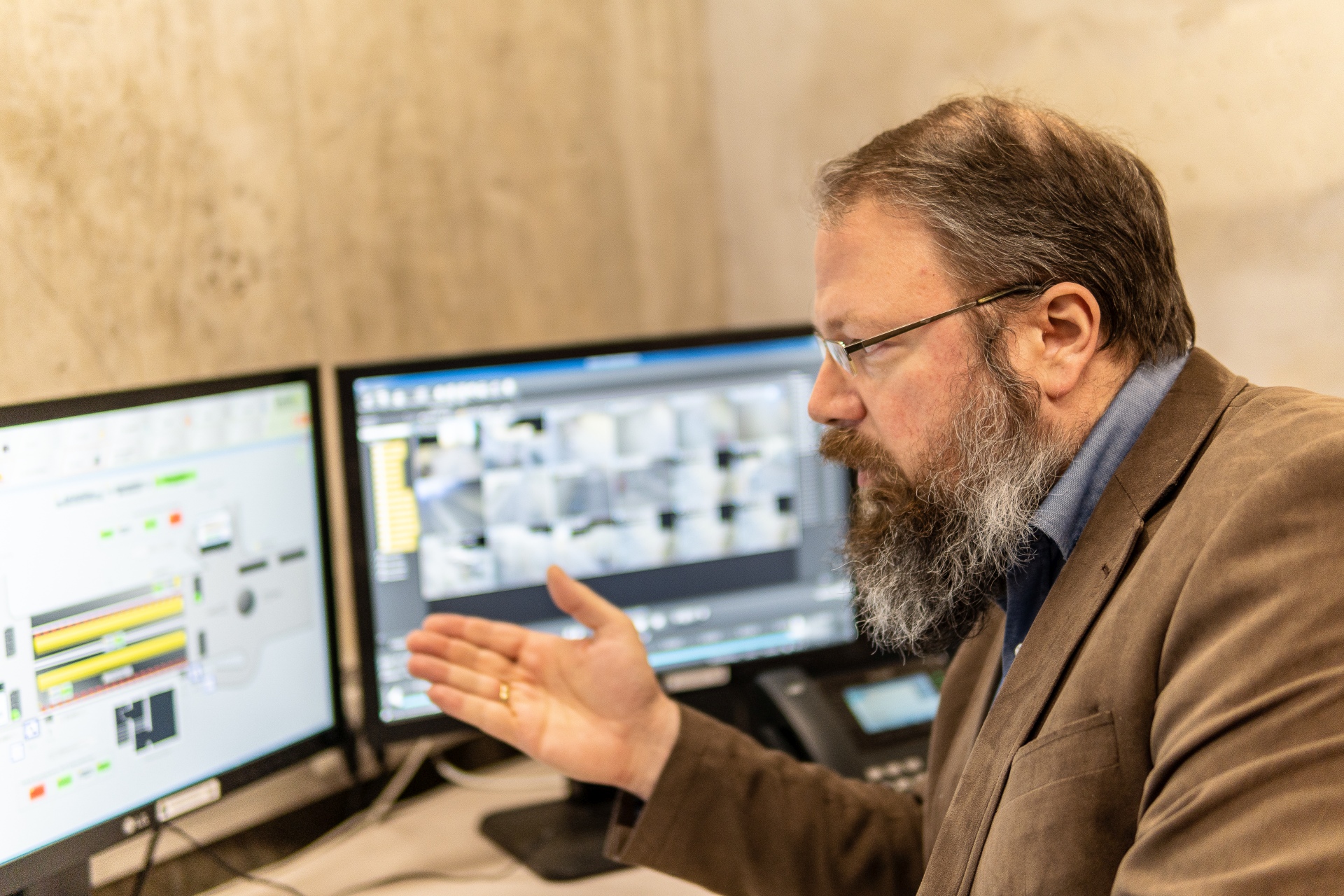 Die Technikzentrale im St. Pöltner Landhaustunnel ist überraschend aufgeräumt. Ein paar Elektronikschränke, ein Serverschrank, ein Schreibtisch mit drei Bildschirmen - das war's. Mehr ist für den Betrieb eines Tunnels heute nicht notwendig. Nicht zu vergessen: Die Notstromversorgung für den Fall eines Blackouts. Denn das wird kommen, sagt Oberwachtmeister Wolfgang M. Er ist mit vier Mitarbeitern für die Verkehrsinformationssysteme und Tunnel in Niederösterreich verantwortlich. "Wir machen eigentlich alles entlang der Straße mit Strom, bis auf die Ampeln", sagt er. Eine Verantwortung, mit der er gut umgehen kann. Als Unteroffizier hat er gelernt, die Dinge sachlich einzuschätzen.