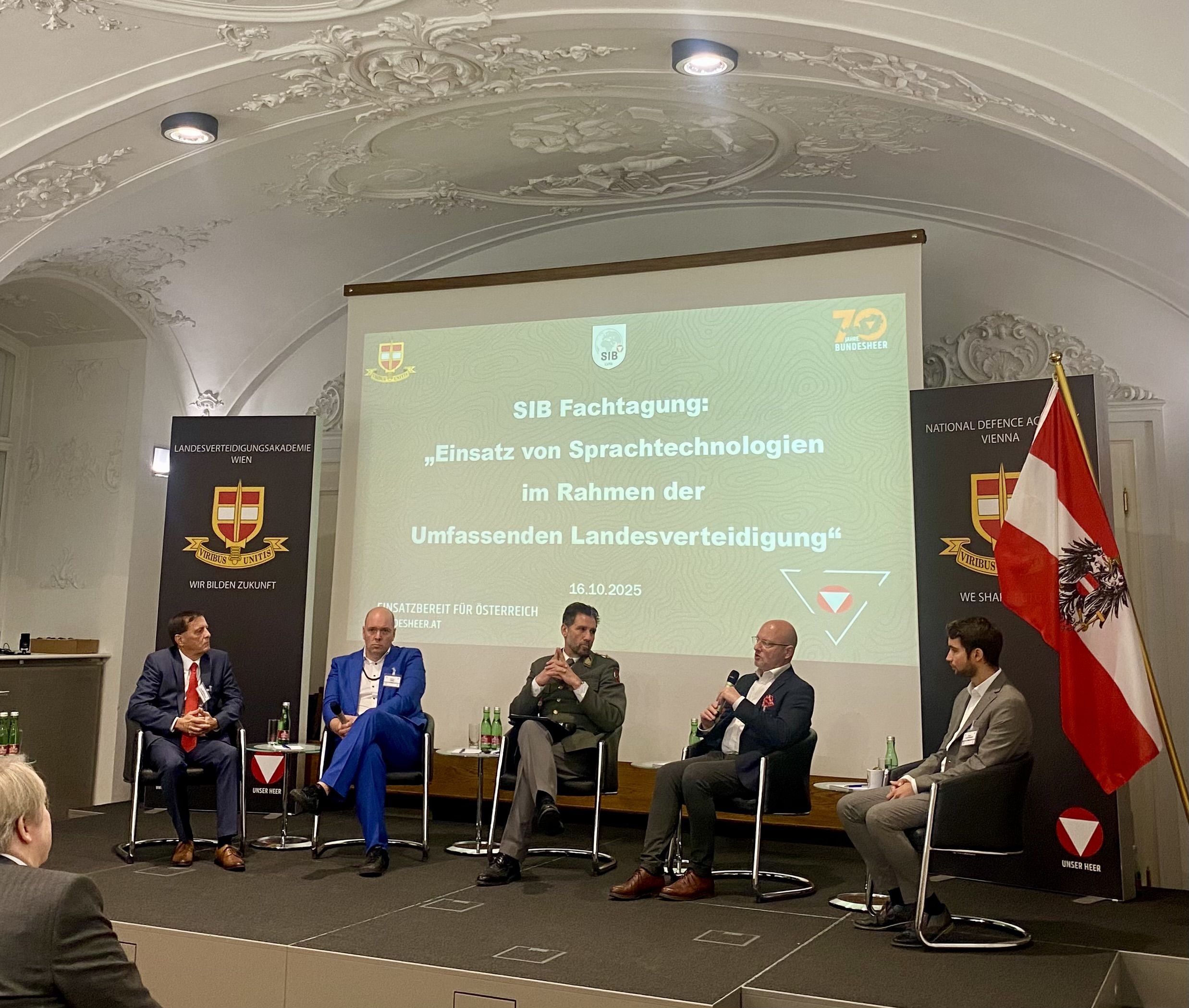 An der Landesverteidigungsakademie in Wien fand am 16. Oktober 2025 die Fachtagung des Sprachinstituts des Bundesheeres zum Thema "Einsatz von Sprachtechnologien im Rahmen der Umfassenden Landesverteidigung" statt.