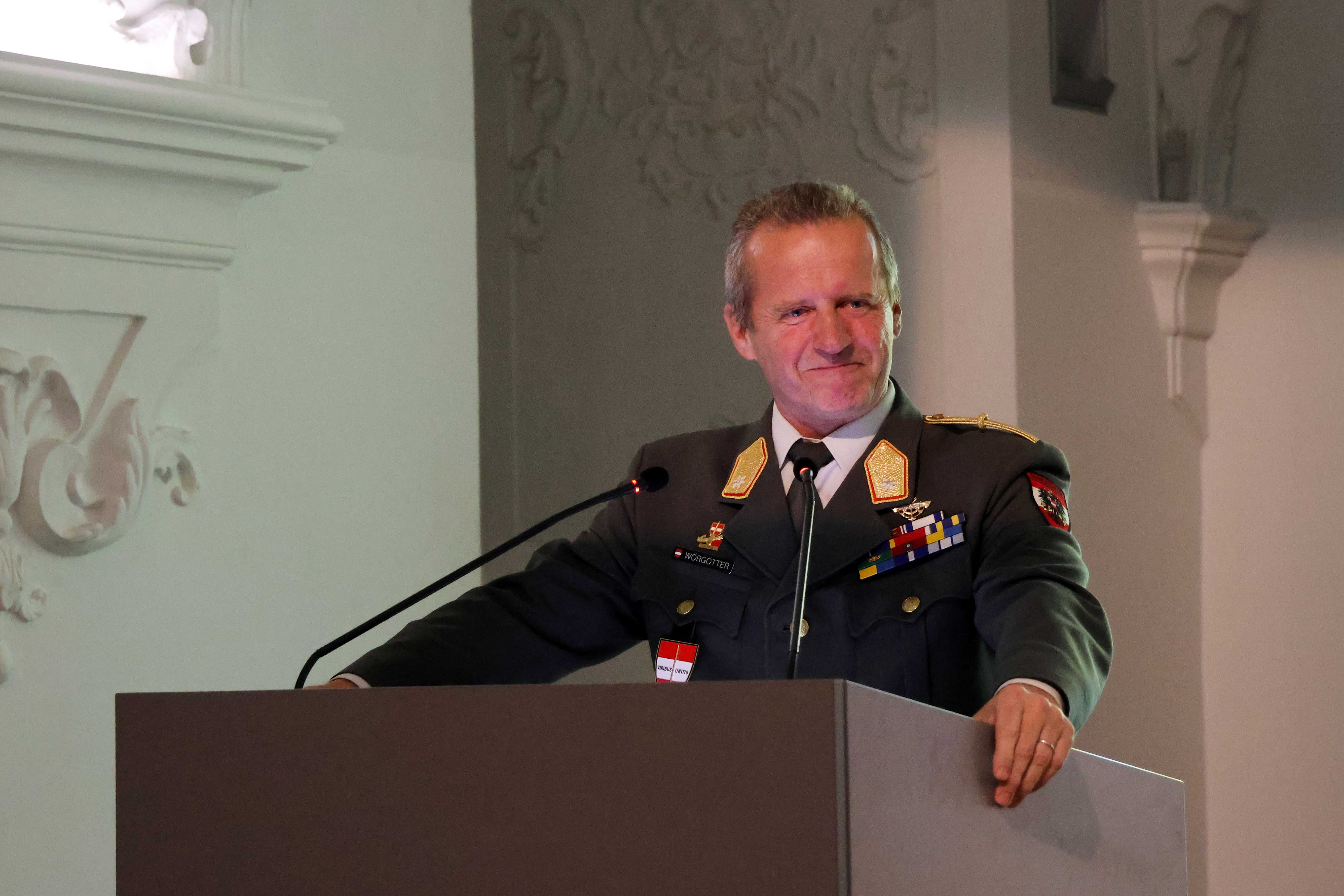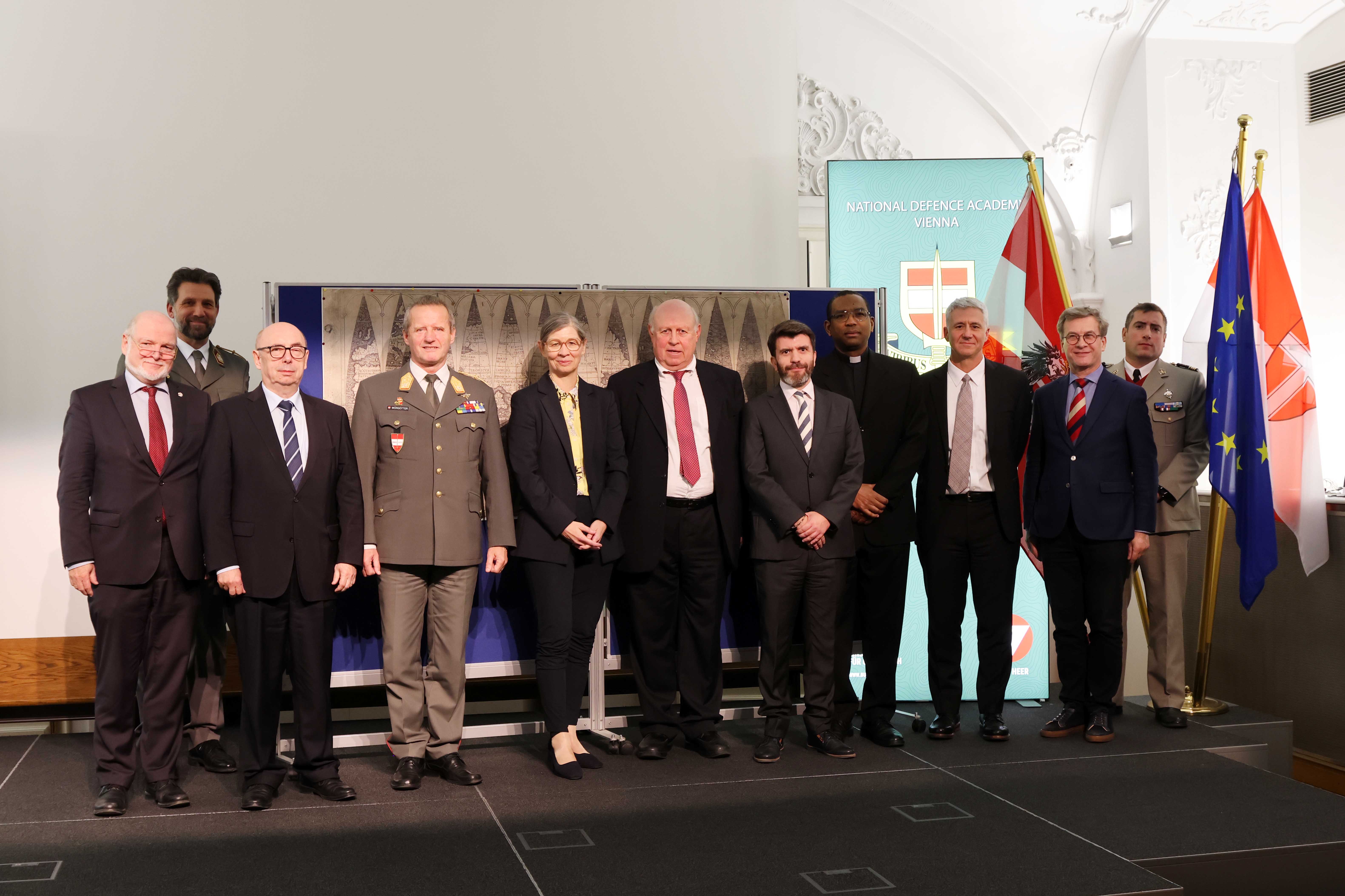 Der stellvertretende Kommandant der Landesverteidigungsakademie, Brigadier Jürgen Wörgötter, begrüßte das Publikum, in welchem sich zahlreiche Ehrengäste einfanden, zu dem außergewöhnlichen Vortag "Amerikas älteste kartographische Geburtsurkunde. Ein über 500 Jahre alter verborgener Schatz" von Stefaan Missinne.
