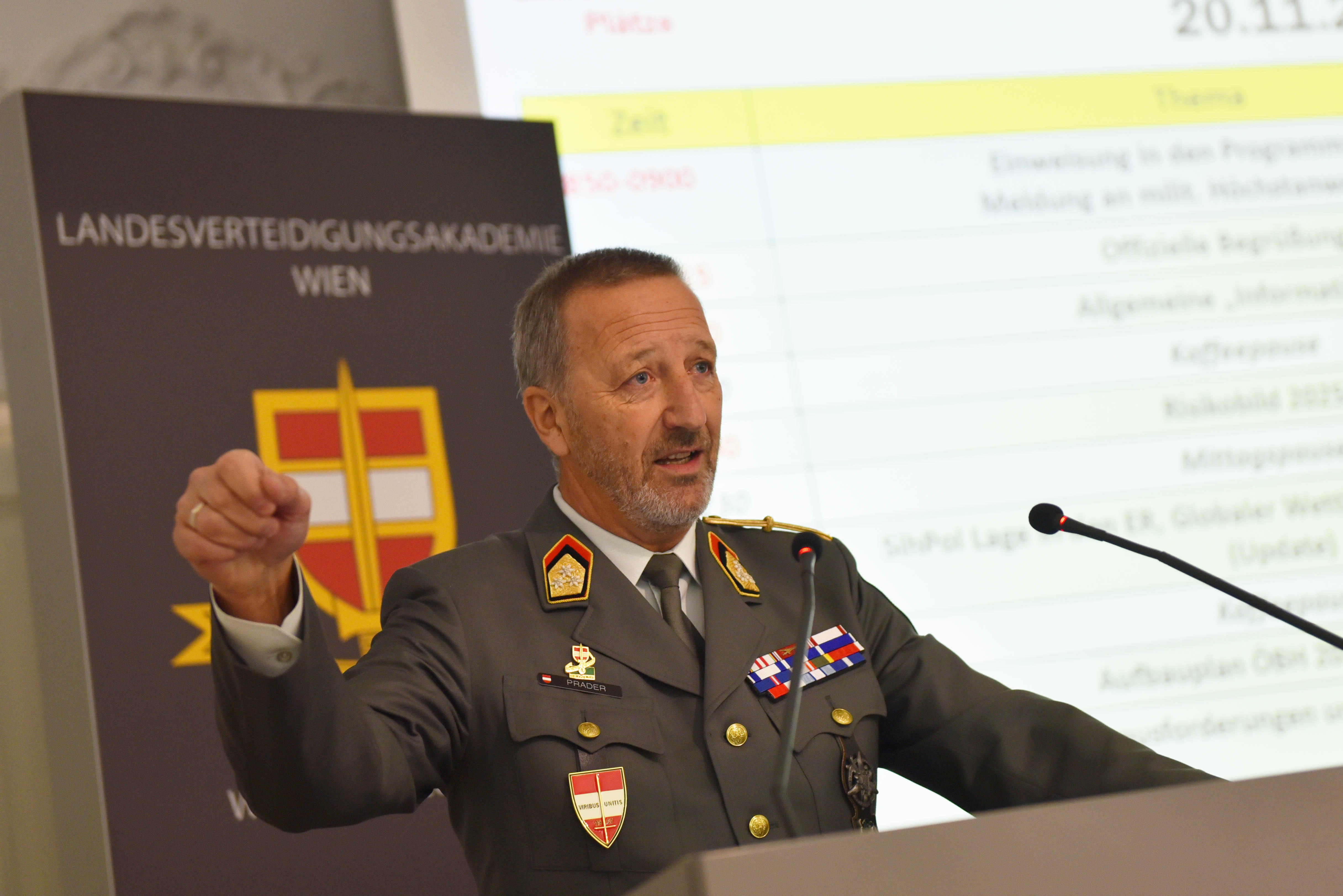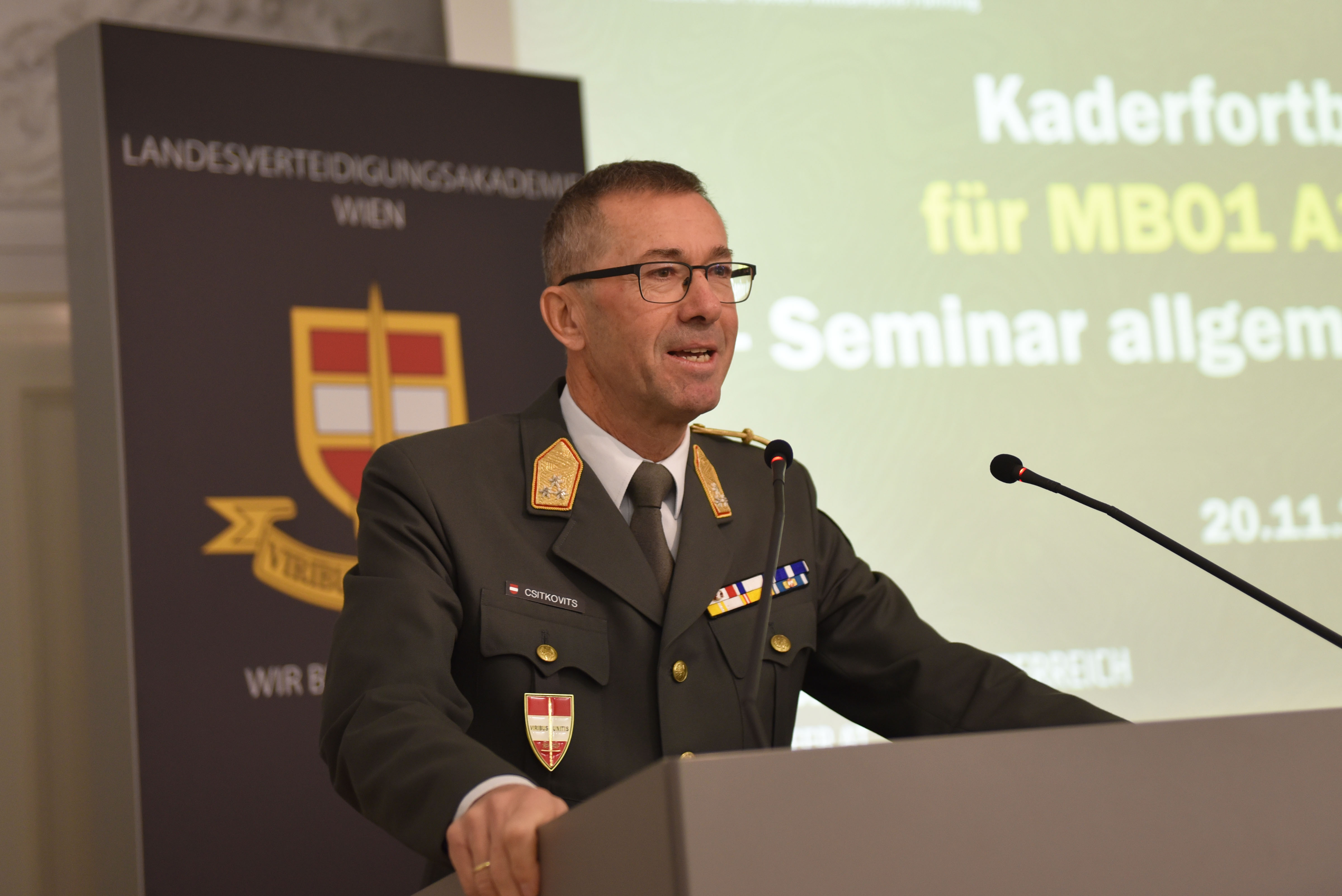 Der Akademiekommandant Generalleutnant Csitkovits eröffnete die Veranstaltung und betonte in seiner Ansprache die Bedeutung kontinuierlicher Weiterbildung für militärische Führungskräfte. Angesichts der sich wandelnden globalen Sicherheitslage sei es entscheidend, Wissen und Führungskompetenz ständig weiterzuentwickeln. Zudem informierte er über laufende Lehrgänge und Initiativen an der Akademie.