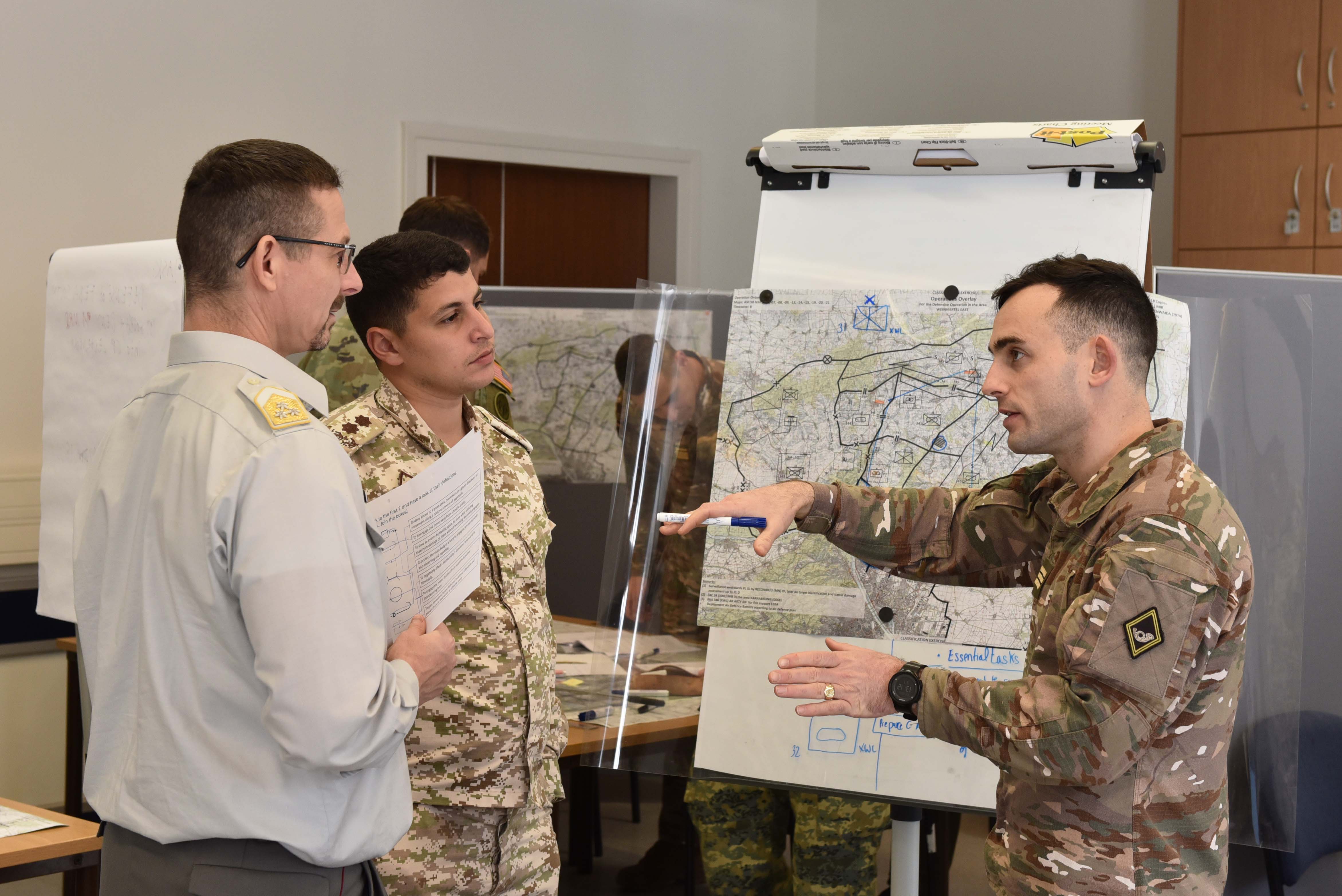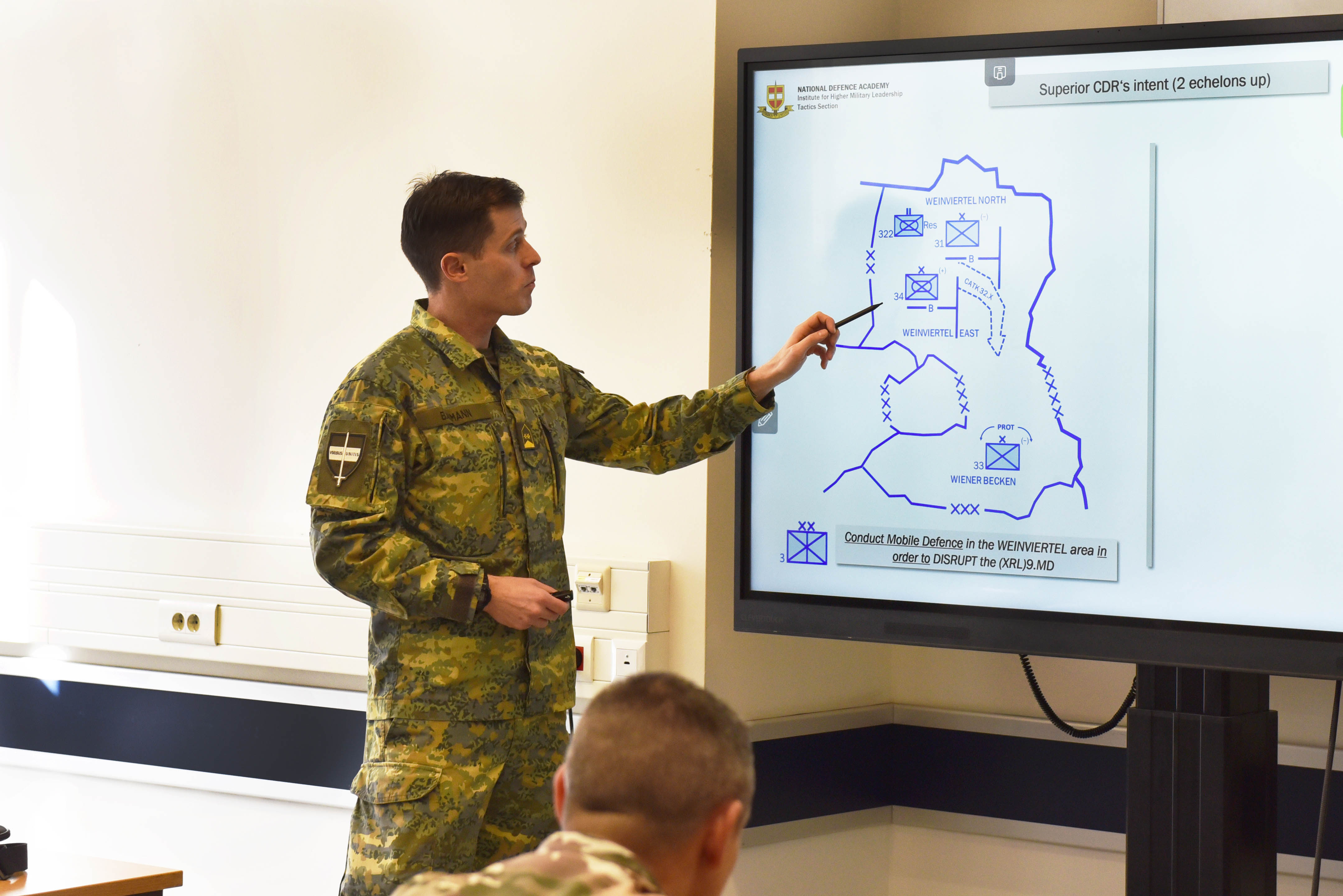 Zu Beginn erläuterte Oberst Preining, Referatsleiter Fachsprache Englisch, die Anwendung von militärischem Vokabular, insbesondere sogenannter Task Verbs im Planungsverfahren. In weiterer Folge wurden durch einen Offizier der New York National Guard die Troop-leading Procedures und der Military Decision Making Process vorgestellt. Österreichs Partner im US State Partnership Program ist zwar Vermont, aber dieses Mal wurden ein Offizier und ein Unteroffizier aus New York zur wichtigen Ausbildungsunterstützung nach Österreich entsendet.