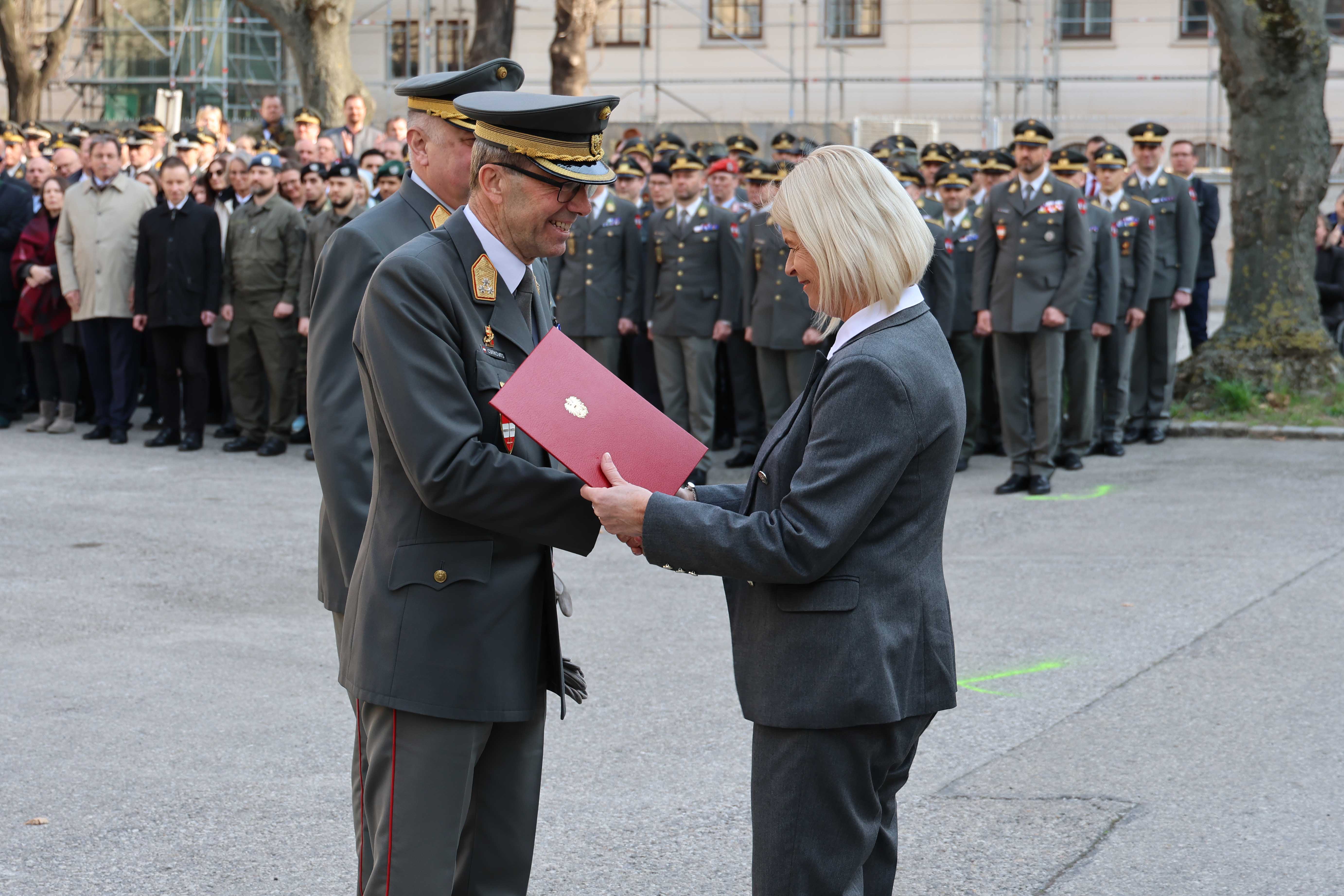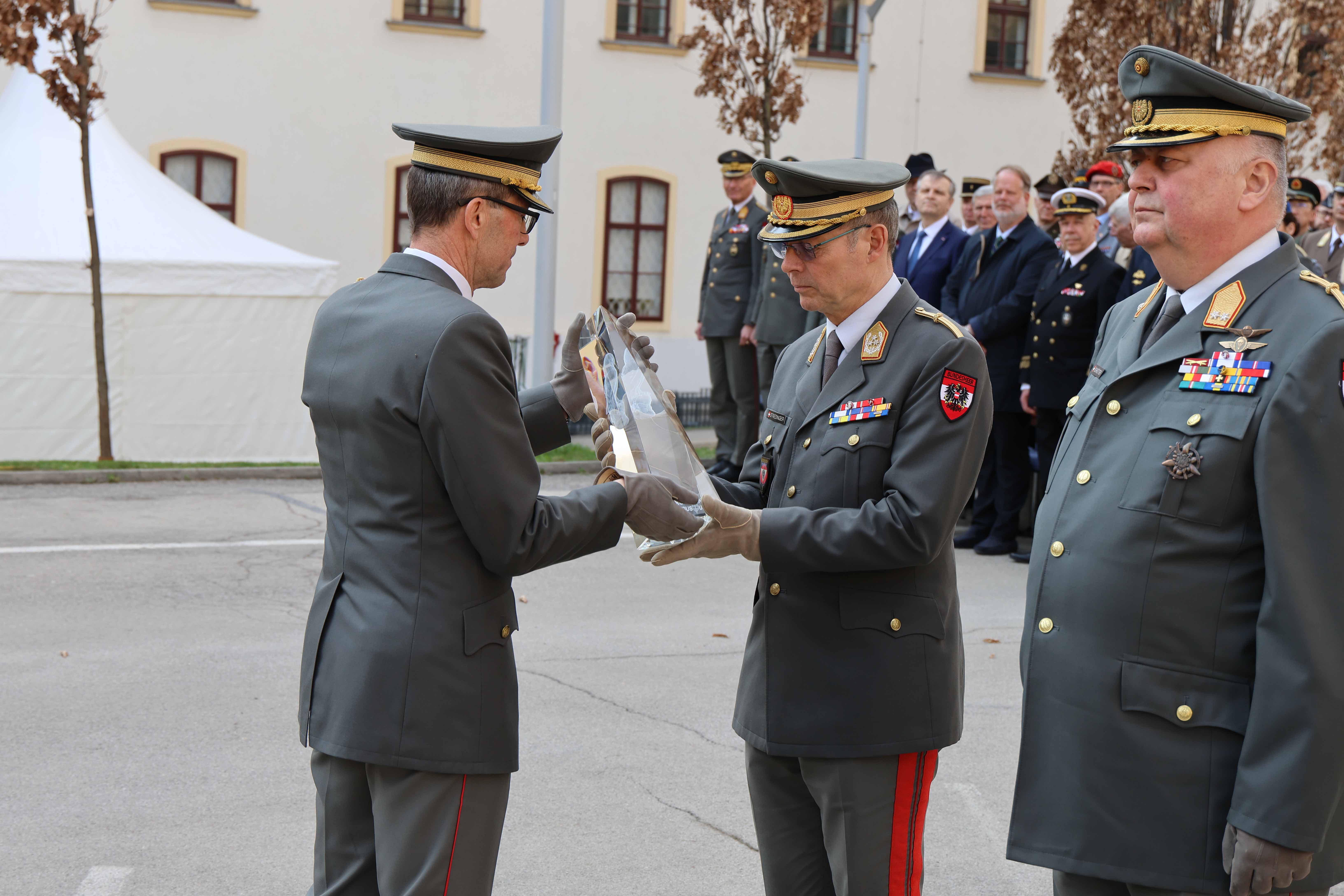 Der Kommandowechsel wurde durch ein jahrhundertealtes Ritual symbolisiert: die Übergabe der Akademie-Insignie, einer etwa 50 Zentimeter großen gläsernen Eule, die als Symbol für Weisheit und militärische Führung steht. Diese Symbolik spiegelt den Auftrag der Akademie wider: die Ausbildung von militärischen und zivilen Führungskräften, die sowohl über taktisches Geschick als auch über strategisches Denkvermögen verfügen müssen. Diese besondere Zeremonie verdeutlicht die Kontinuität und Tradition der Institution, die ihre Wurzeln bis ins Jahr 1717 zurückverfolgen kann. Generalstabschef General Rudolf Striedinger fungierte als Mittler bei dieser symbolischen Handlung, indem er die Insignie zunächst von Generalleutnant Csitkovits entgegennahm und anschließend an den neuen Kommandanten weiterreichte.