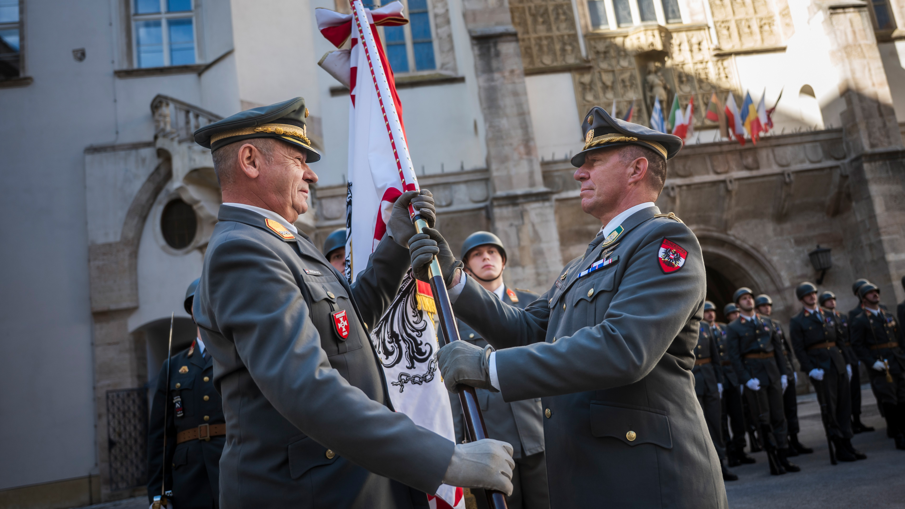 Die Aufgabe des Kommandanten sei eine entscheidende, da er maßgeblich mitbestimme, welche Persönlichkeiten das Offizierskorps prägen. An Oberst Fleischmann gerichtet, dankte Striedinger für dessen langjährige Verdienste, seine Vorbildwirkung durch körperliche Leistungsfähigkeit und Ausdauer sowie sein konsequentes Vorleben soldatischer Werte. Symbolisiert wurde der Kommandowechsel durch die Übergabe der Fahne des Akademikerbataillons, die Oberst Fleischmann an den Akademiekommandanten zurückgab, bevor sie an den neuen Kommandanten, Oberst Markus Hornof, weitergereicht wurde.
