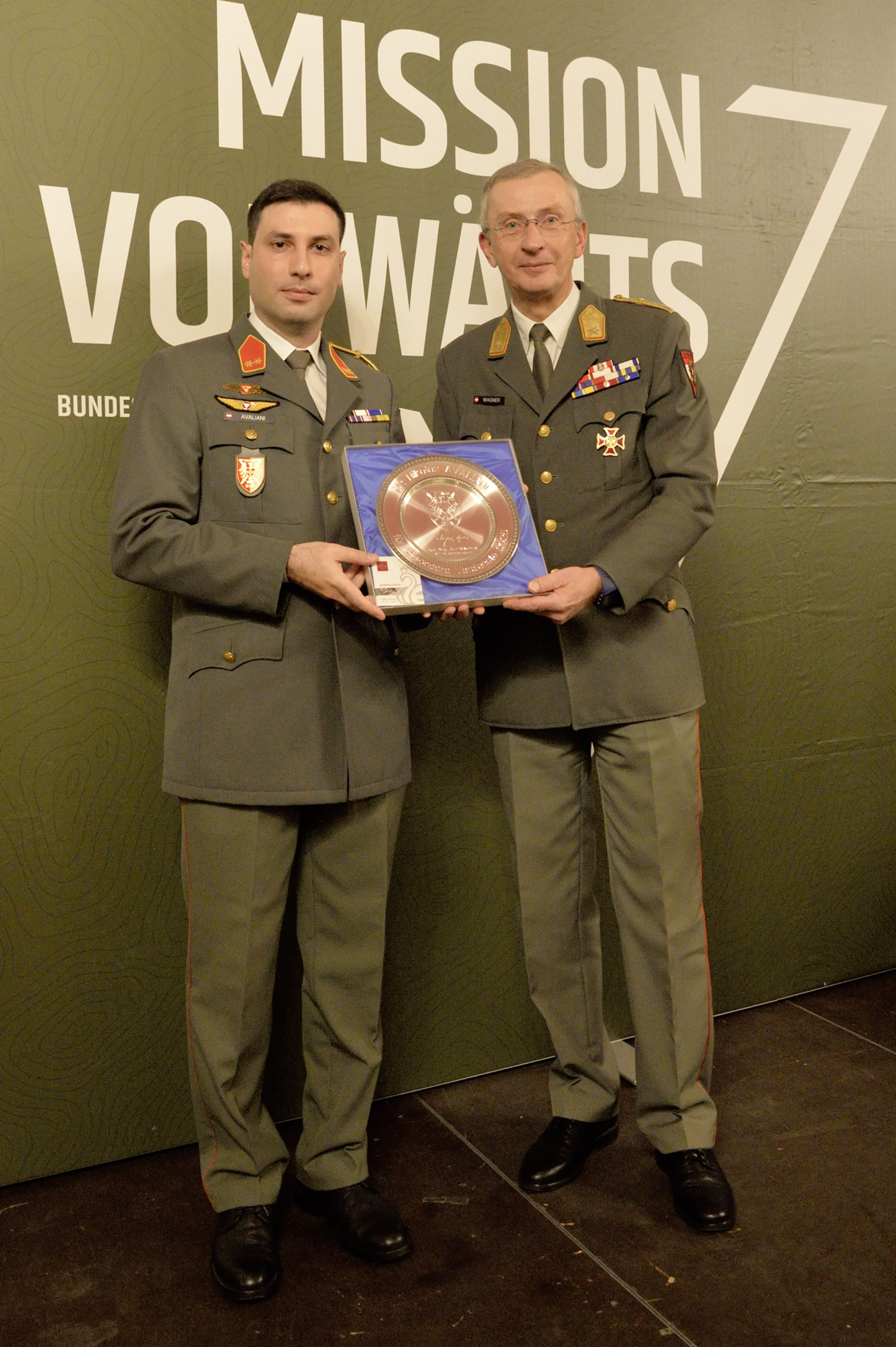 Ein weiterer Silberteller wurde Oberleutnant Nikoloz Avaliani, der als Presseoffizier mit Ruhe, Übersicht und Genauigkeit die Informations- und Pressestelle des Militärkommandos Wien leitete und durch enge Zusammenarbeit mit den Stellen des Bundesministeriums für Landesverteidigung eine breite und positive Medienberichterstattung sicherstellte, verliehen. Auch als Vertreter seines Abteilungsleiters konnte er seine Verlässlichkeit und Führungsstärke unter Beweis stellen.