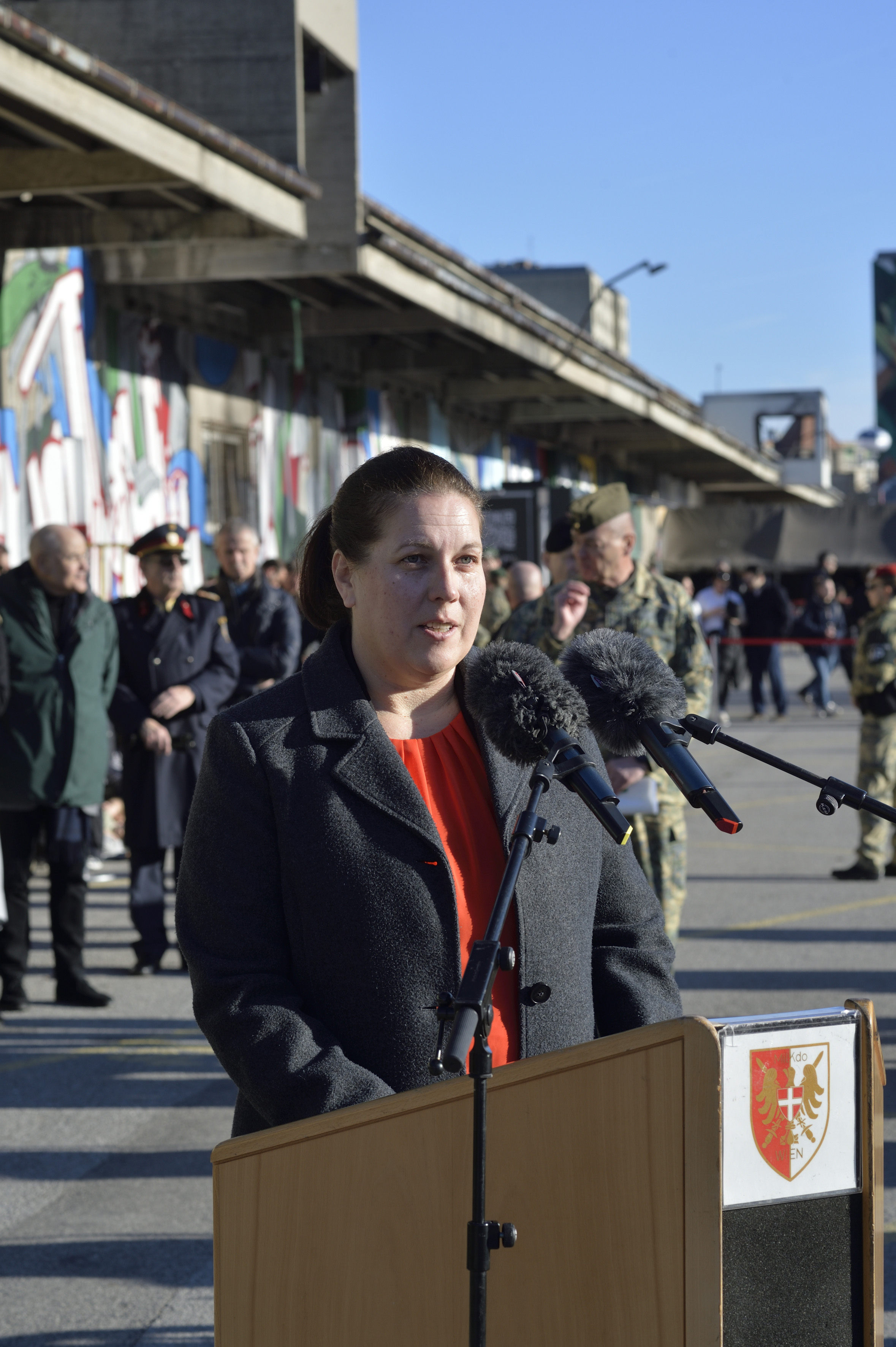 Während ihrer Begrüßungsansprache zeigte sich Bezirksvorsteherin Dubravac-Widholm äußerst dankbar dafür, dass diese Angelobung in der Brigittenau stattfinde und betonte, dass die Angelobung an diesem Ort ein Symbol für den Wandel und die Zukunft des Bezirks sei sowie die Bedeutung solcher feierlichen Akte für das demokratische Selbstverständnis und die Sicherheit Österreichs – „Vom Industrie- und Logistikstandort hin zu einem lebendigen, offenen Stadtquartier: Das steht symbolisch für das, was Sie erwartet – einen neuen Abschnitt, verbunden mit Verantwortung!“