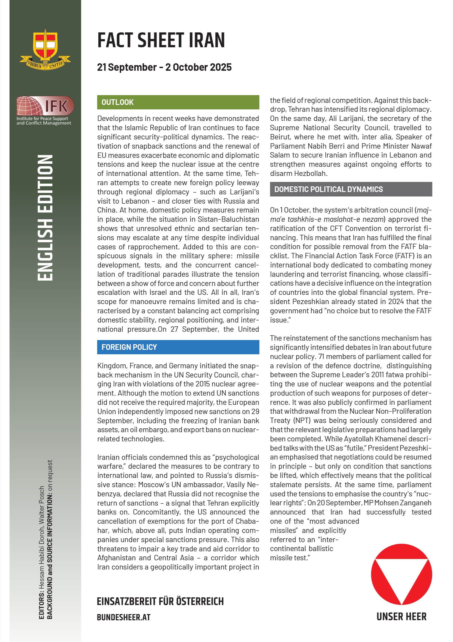 Fact Sheet Iran, 21.09.-02.10.2025, English Edition | 2 Seiten / 194 KB |
