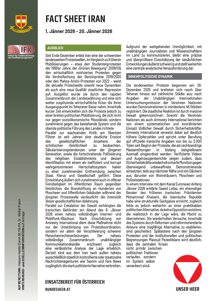 | Fact Sheet Iran 05/26, 01.-20.01.2026 | 2 Seiten / 226 KB |